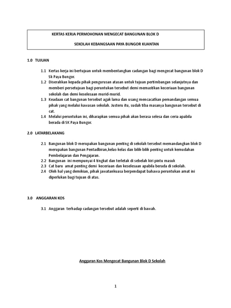 Kertas Kerja Permohonan Cat Bangunan Sekolah Pdf